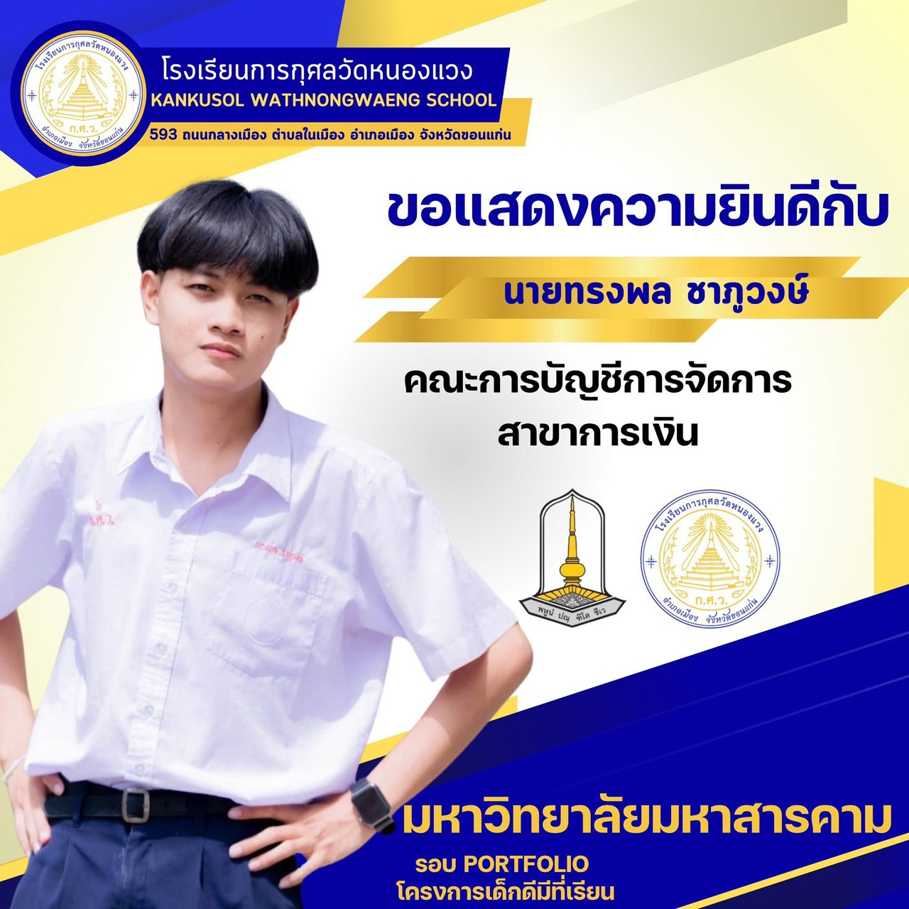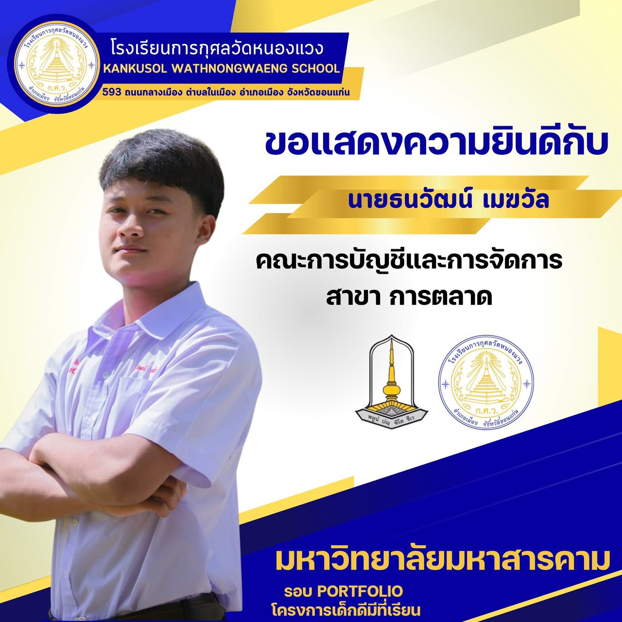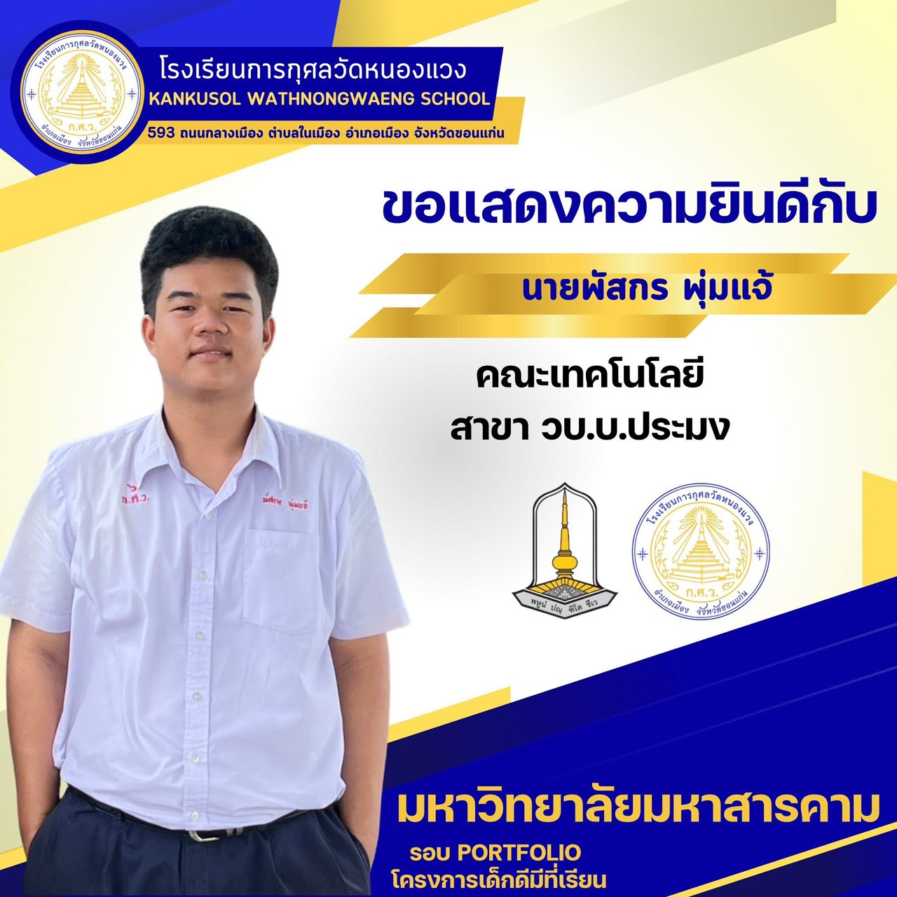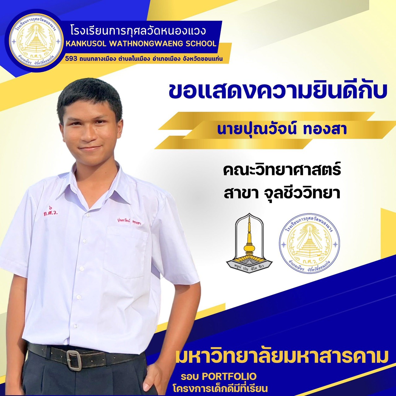 ขอแสดงความยินดีกับนักเรียนผ่านการสอบคัดเลือกเข้ามหาวิทยาลัยมหาสารคาม 25 พ.ย. 64