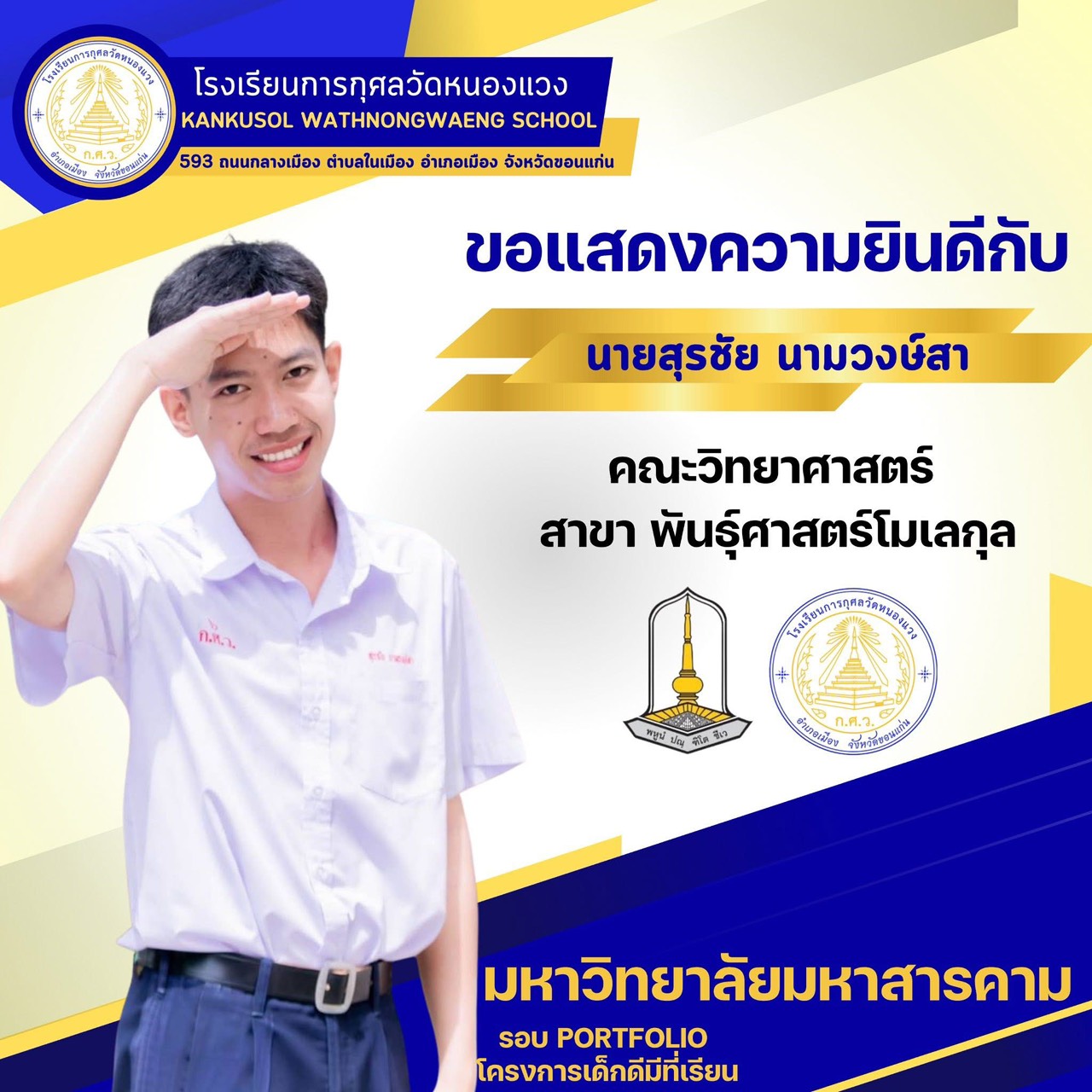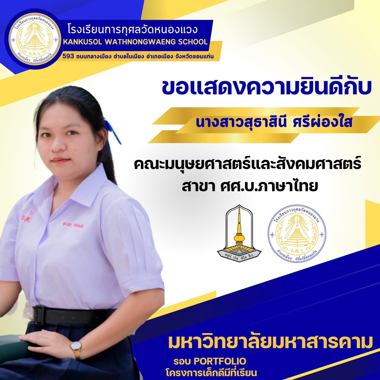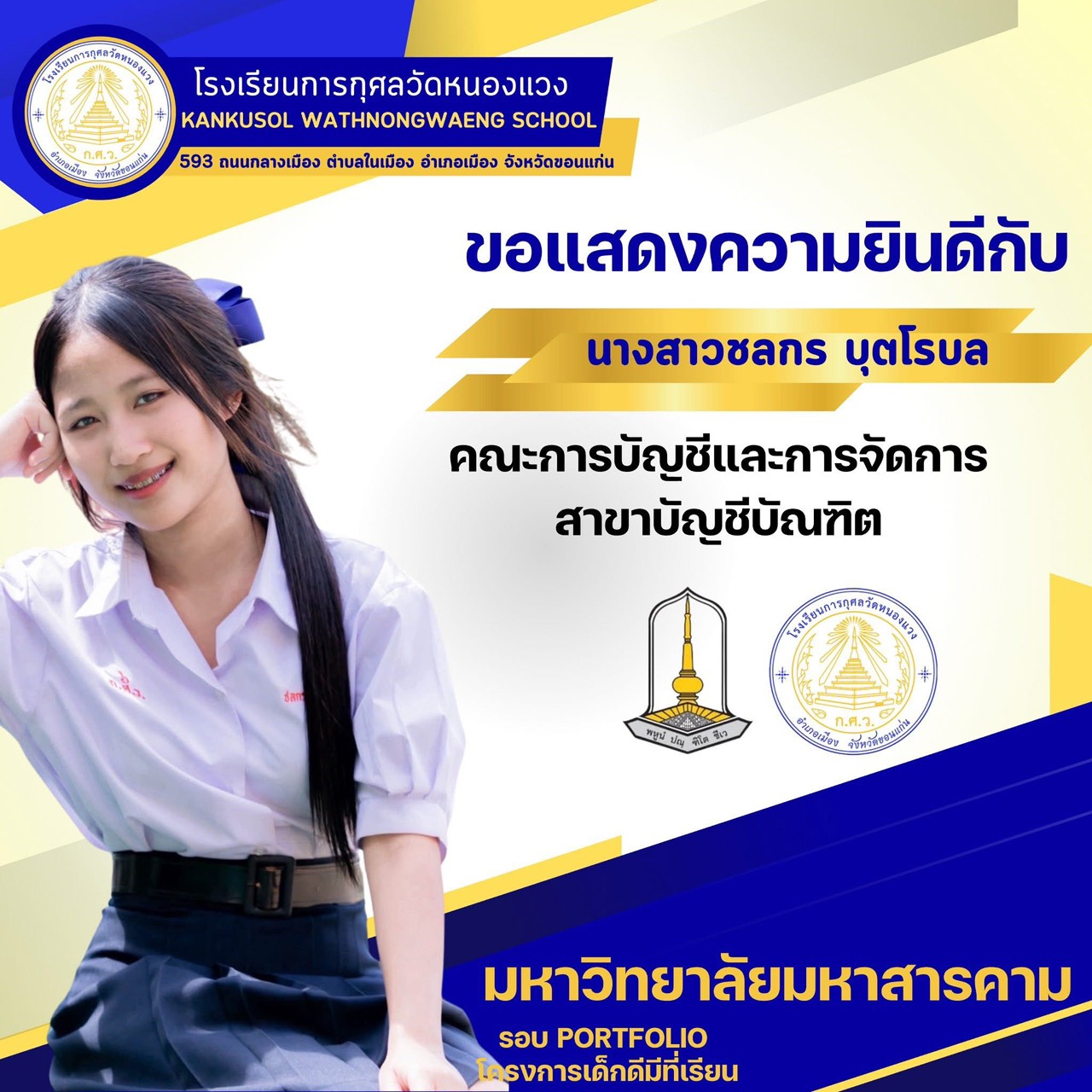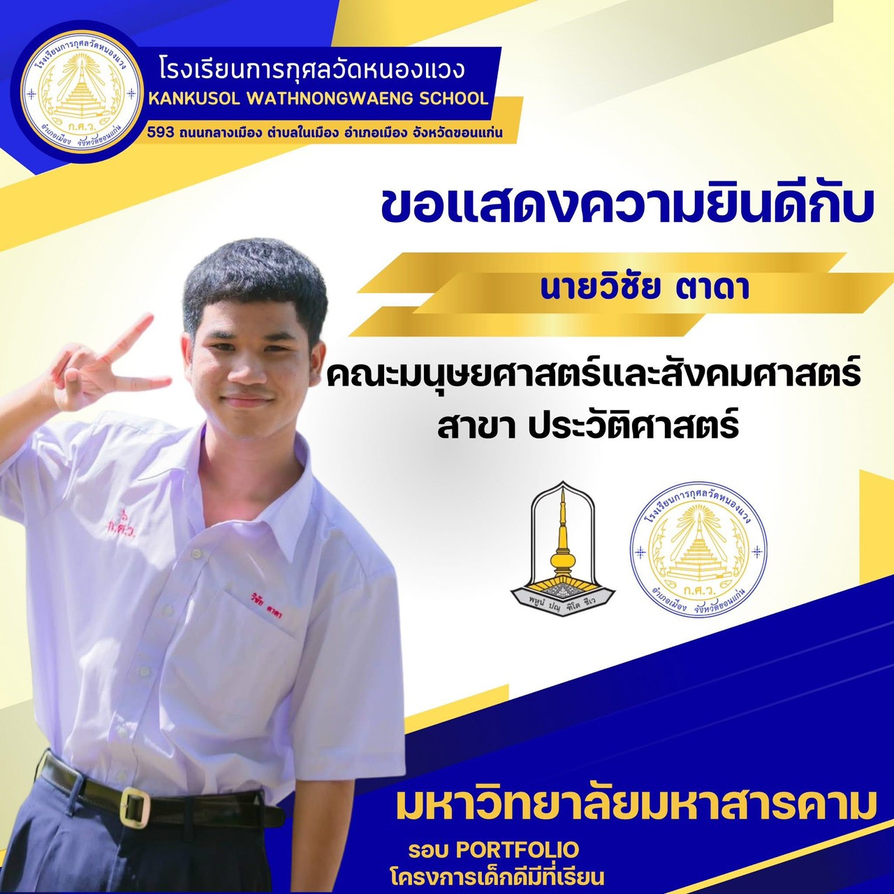ขอแสดงความยินดีกับนักเรียนผ่านการสอบคัดเลือกเข้ามหาวิทยาลัยมหาสารคาม 25 พ.ย. 64