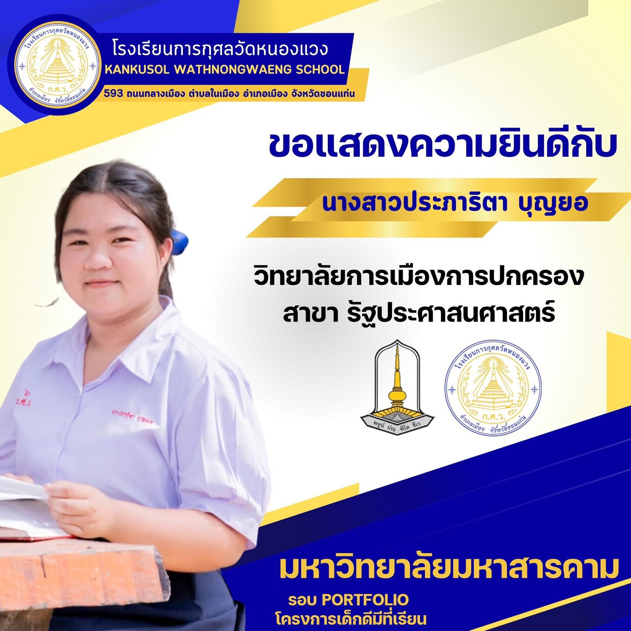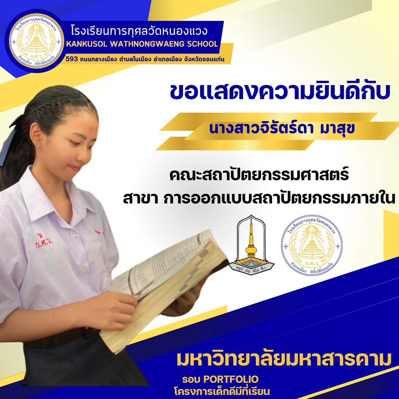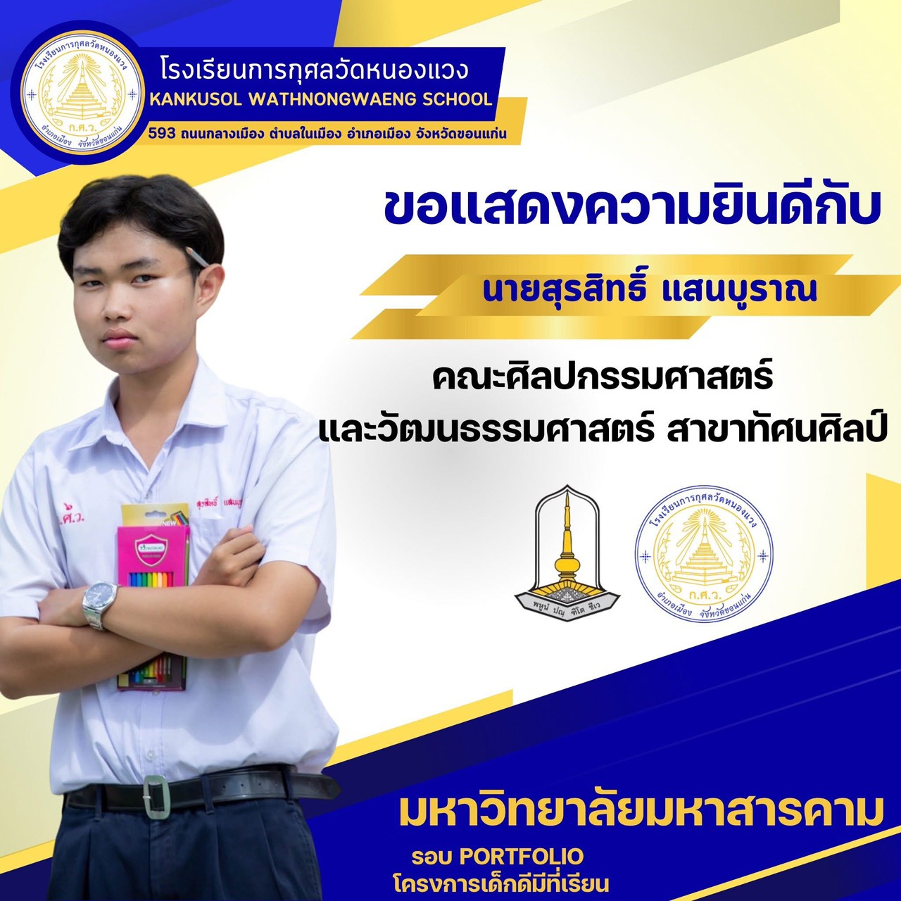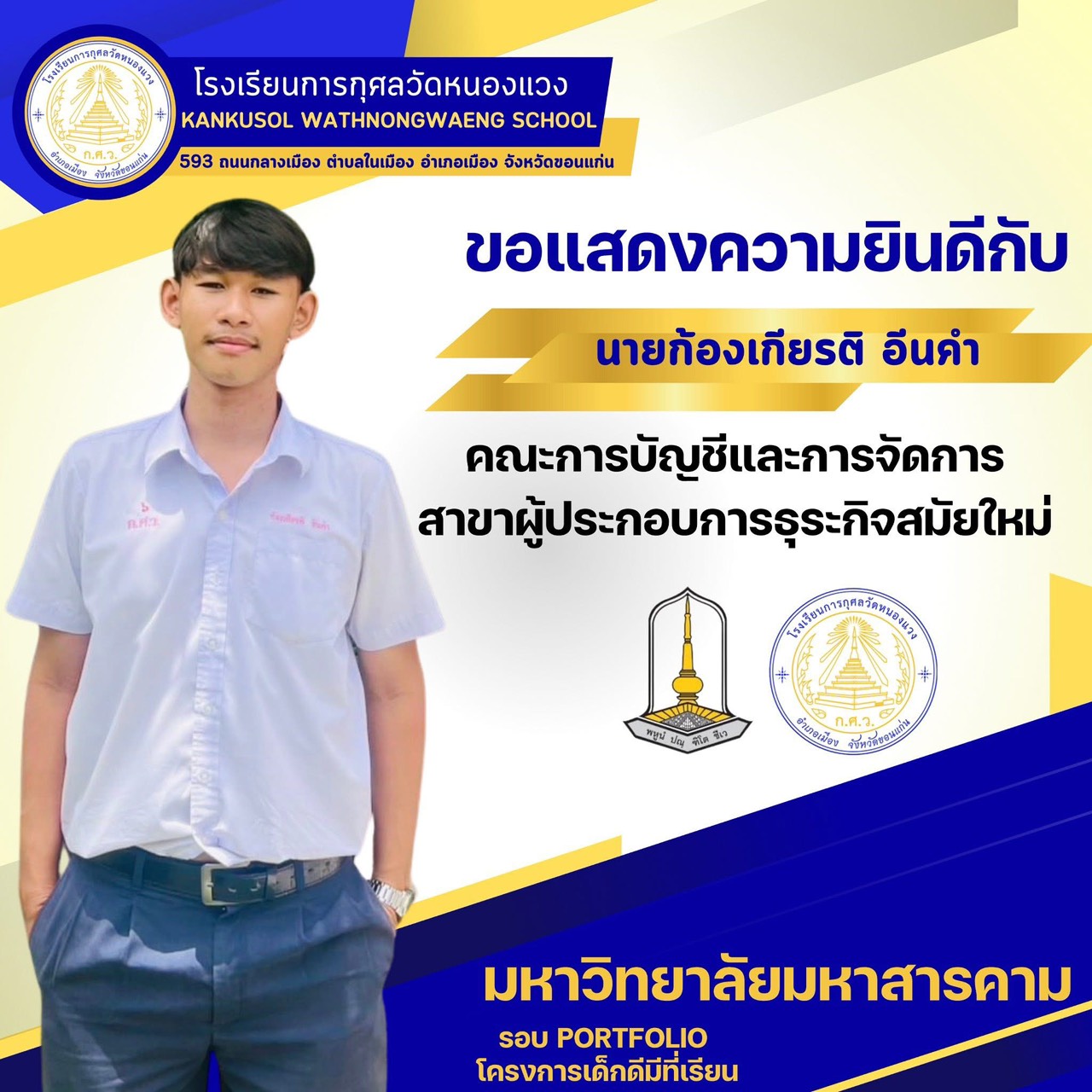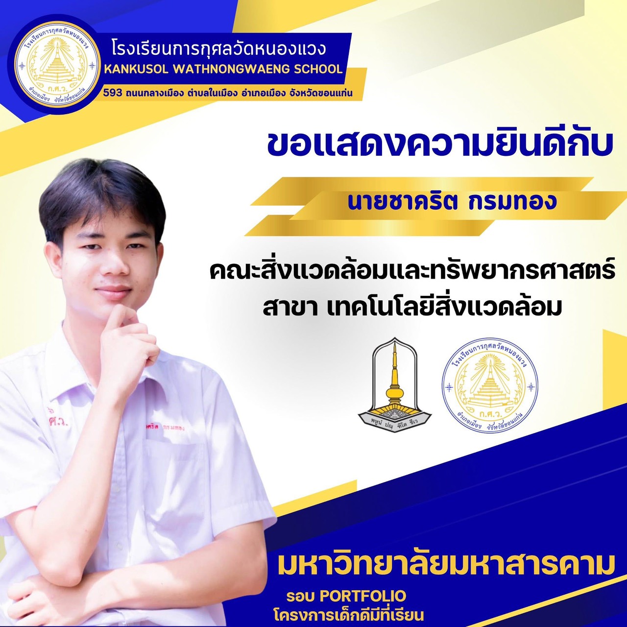 ขอแสดงความยินดีกับนักเรียนผ่านการสอบคัดเลือกเข้ามหาวิทยาลัยมหาสารคาม 25 พ.ย. 64