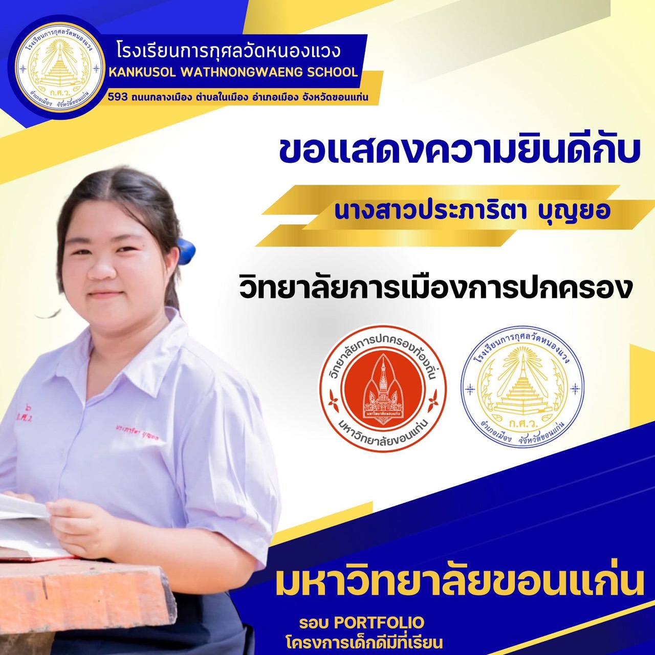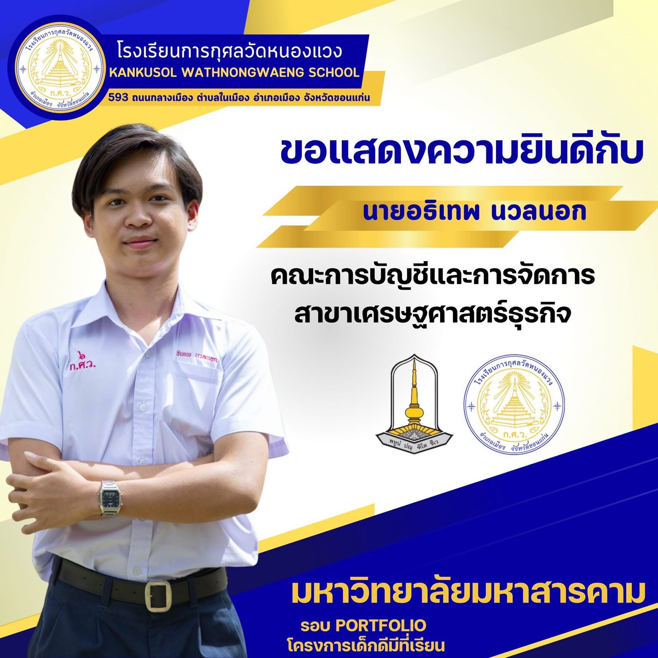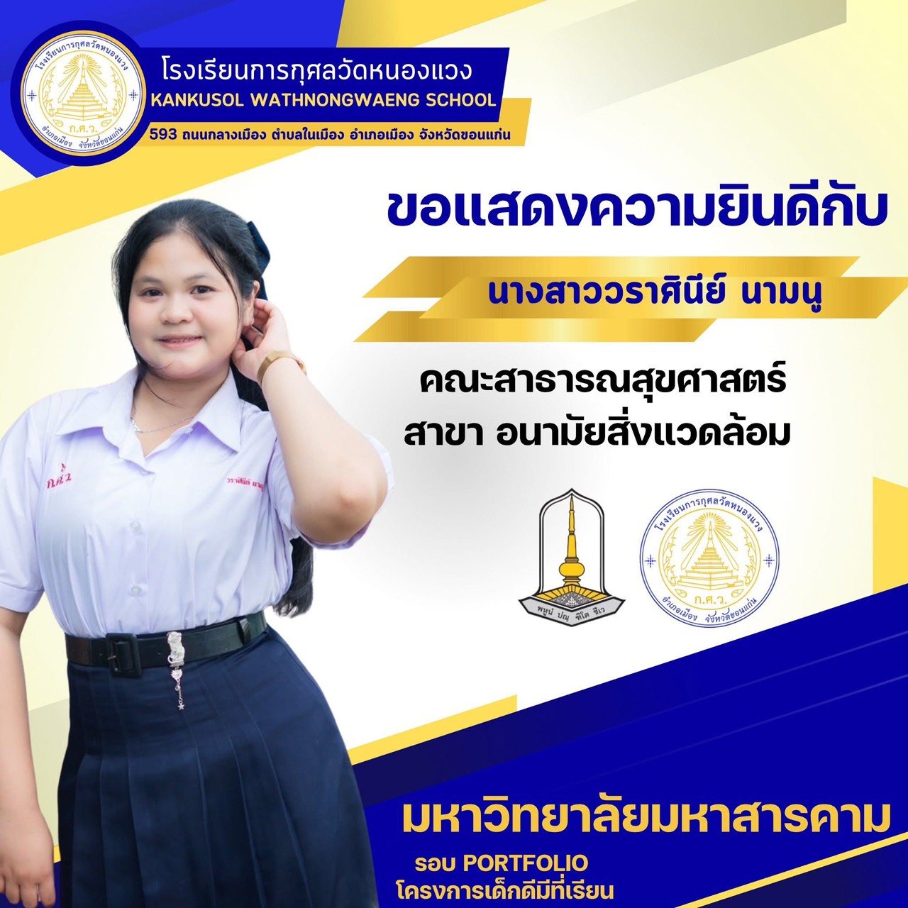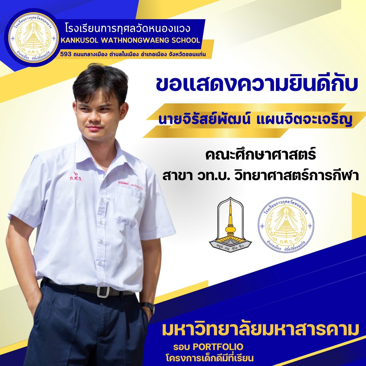 ขอแสดงความยินดีกับนักเรียนผ่านการสอบคัดเลือกเข้ามหาวิทยาลัยมหาสารคาม 25 พ.ย. 64