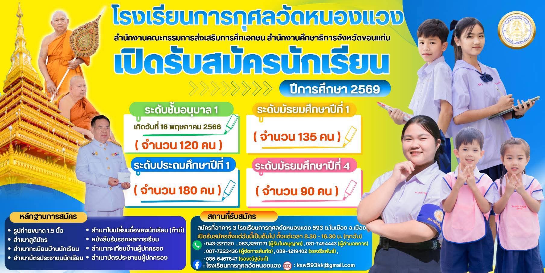 ???โรงเรียนการกุศลวัดหนองแวง ขอแสดงความยินดีกับนักเรียนคนเก่งในการแข่งขันทักษะวิชาการและการประกวดสิ่งประดิษฐ์นักเรียนโรงเรียนเอกชนครั้งที่ 10 ปีการศึกษา 2568 ระดับจังหวัดขอนแก่น 09 ม.ค. 69